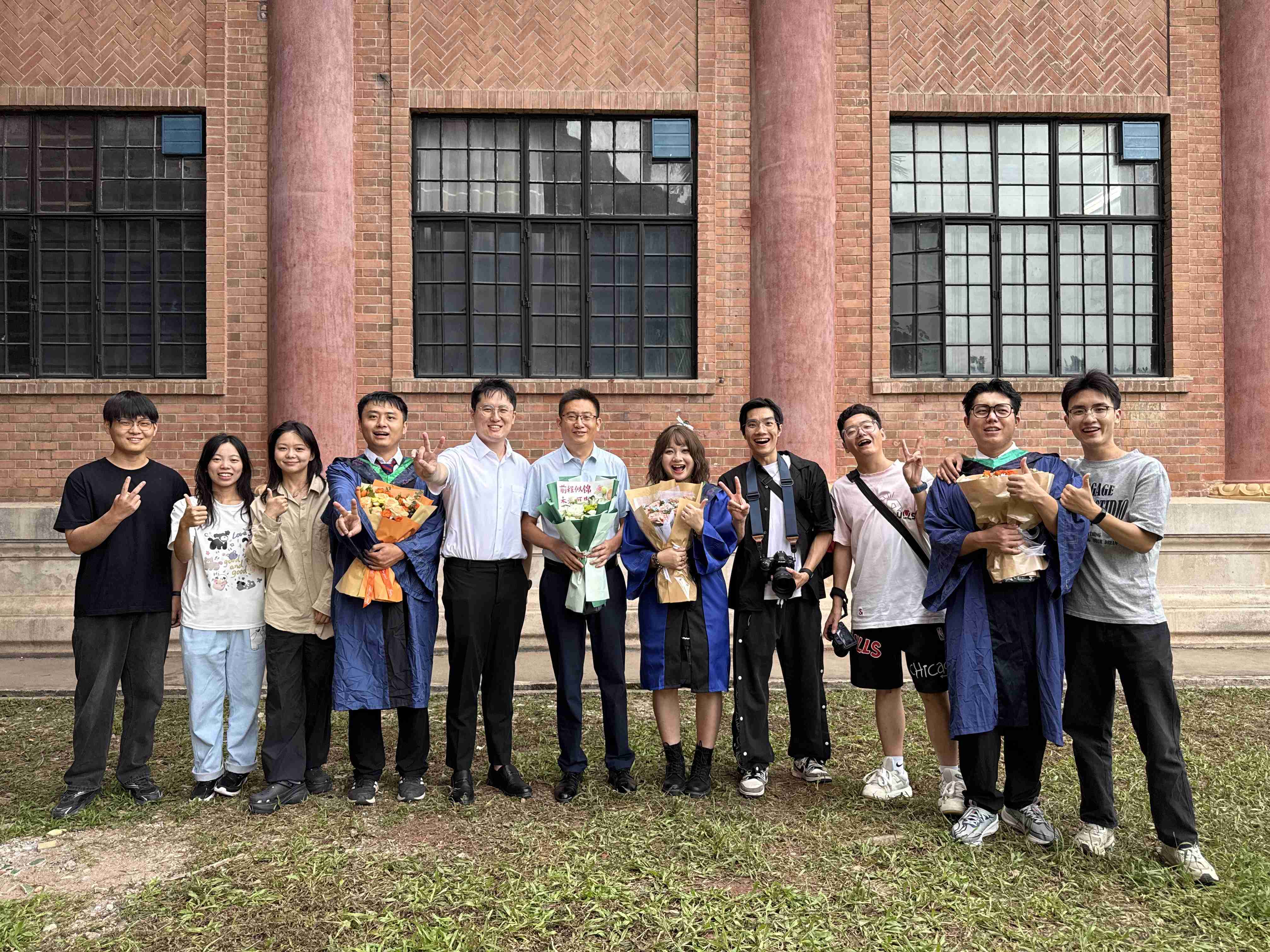 ▲孙少龙(左六)与学生们合影